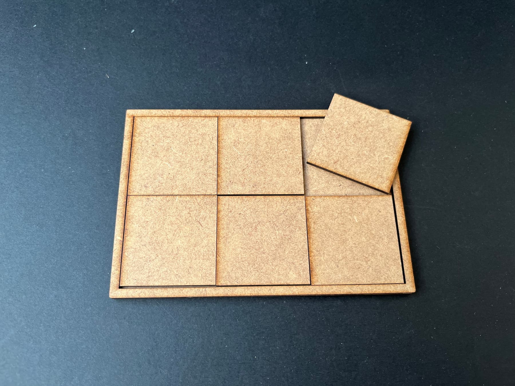 Comprises a 2mm thick MDF base and a 2mm thick MDF top layer with a 4mm wide lip around the edges.